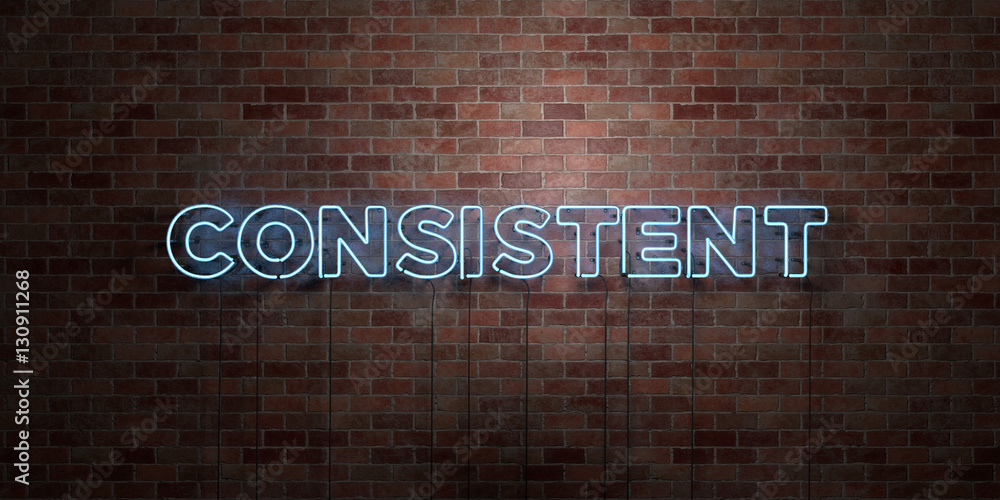 CONSISTENT - fluorescent Neon tube Sign on brickwork - Front view - 3D ...