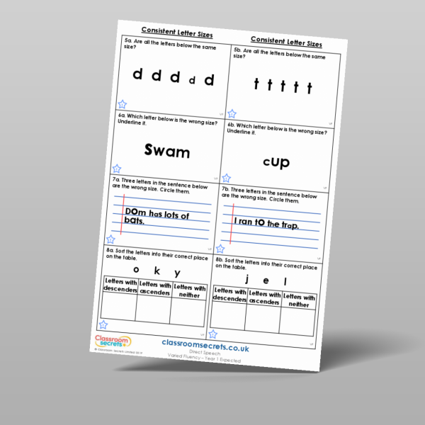 Year 1 Consistent Letter Sizes Application Resource | Classroom Secrets