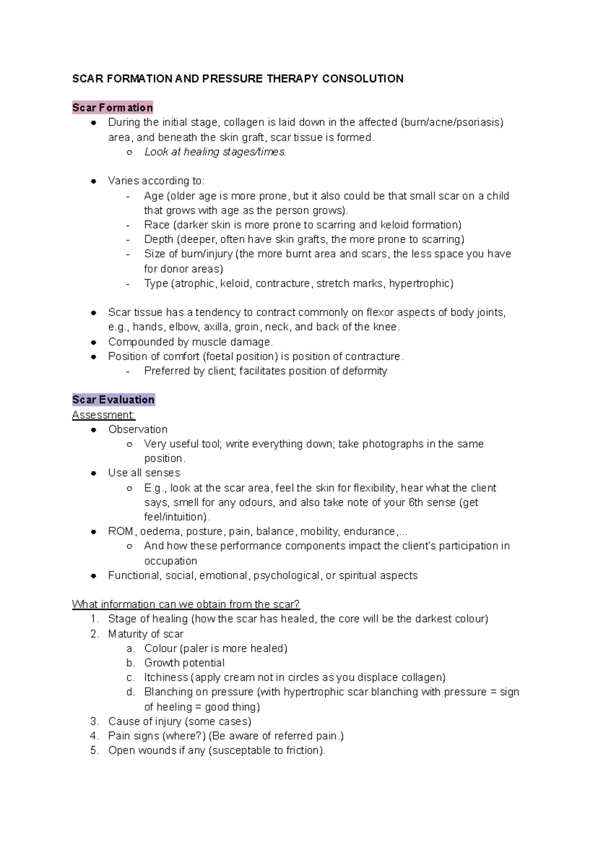 Scar Formation and Pressure Therapy Consolidation - SCAR FORMATION AND ...