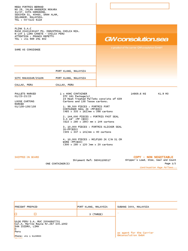 GW Consolution Bill of Lading - 6041106517 | PDF | Cargo | Bill Of Lading