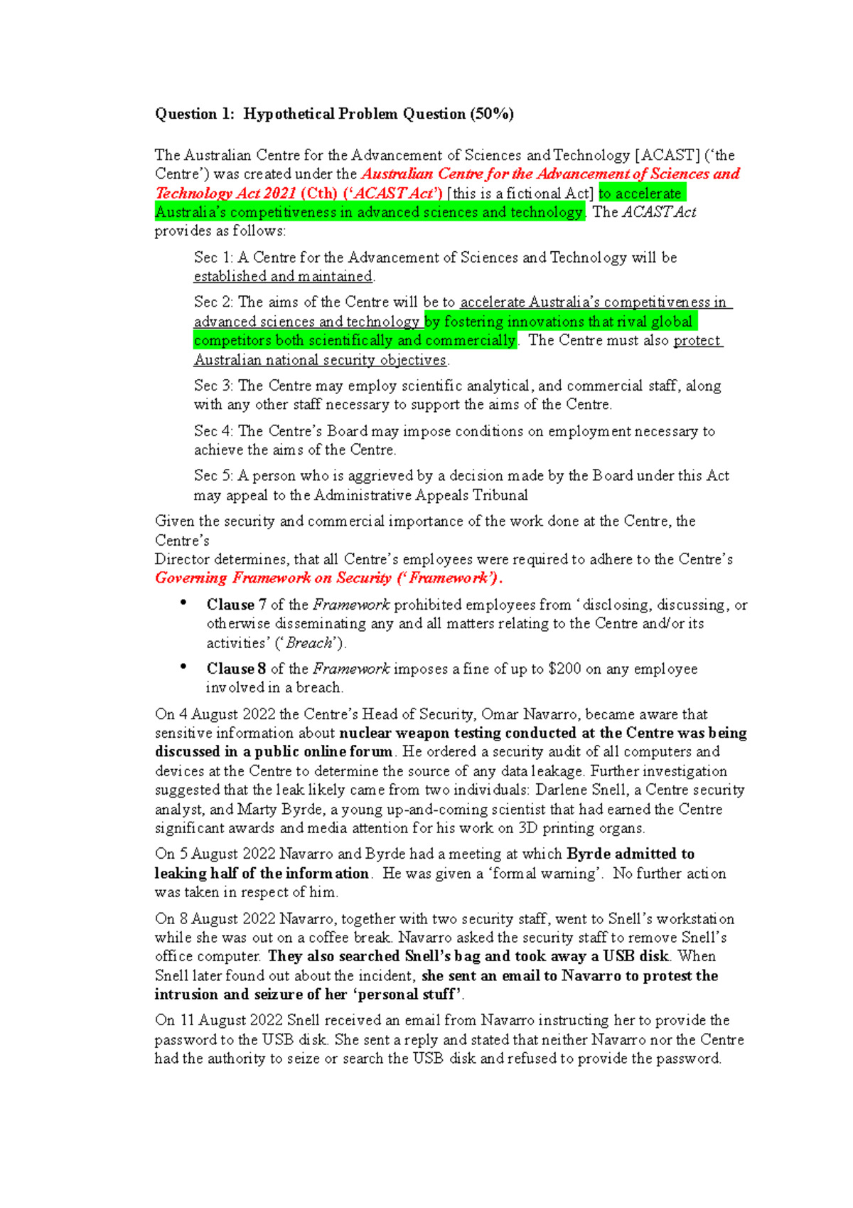 Const exam - Question 1: Hypothetical Problem Question (50%) The ...