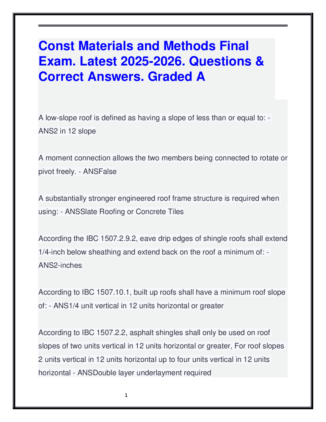Const Materials and Methods Final Exam 2025-2026. Questions & Correct ...