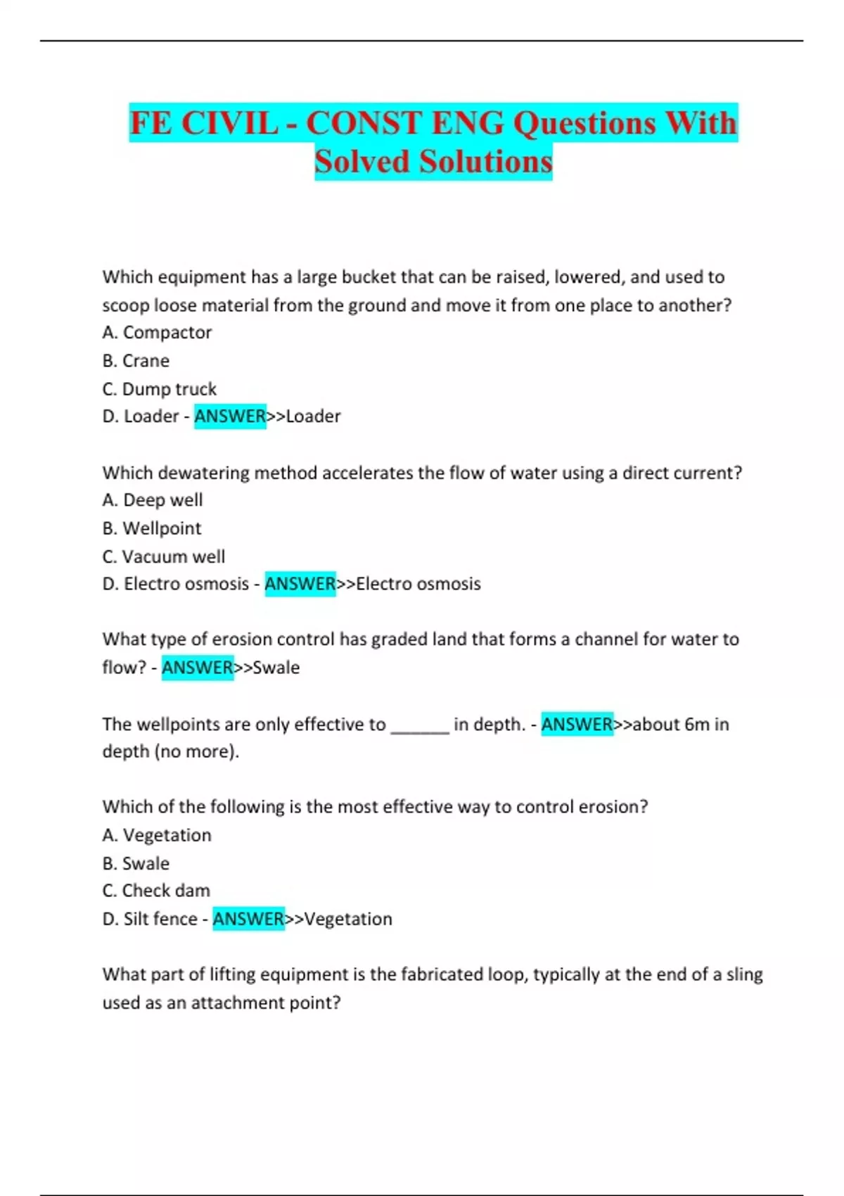 FE CIVIL - CONST ENG Questions With Solved Solutions - Nursing - Stuvia US