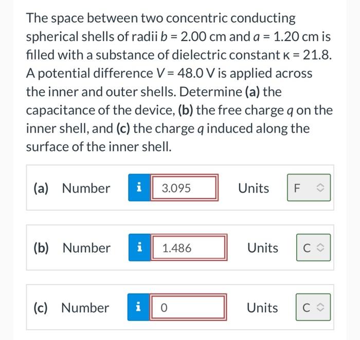 SOLVED:Q3-Ch22 Two concentric spherical conducting shells are separated ...