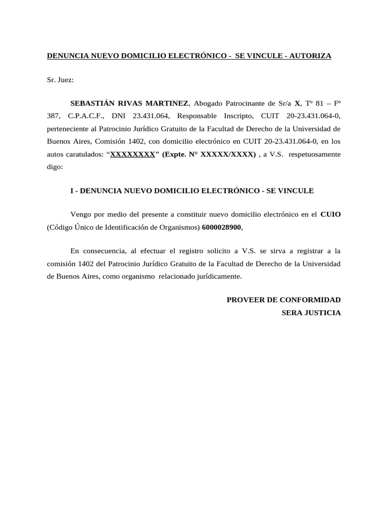 Modelo Constituye Nuevo Domicilio Electronico | PDF