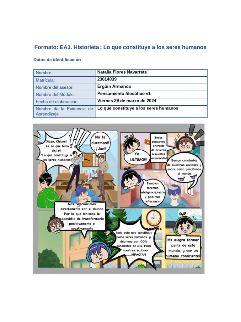 EA3 Historieta: Lo que constituye a los seres humanos - Pensamiento ...