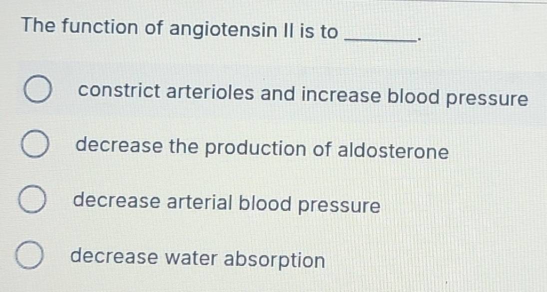 Solved: The function of angiotensin II is to_ . constrict arterioles ...