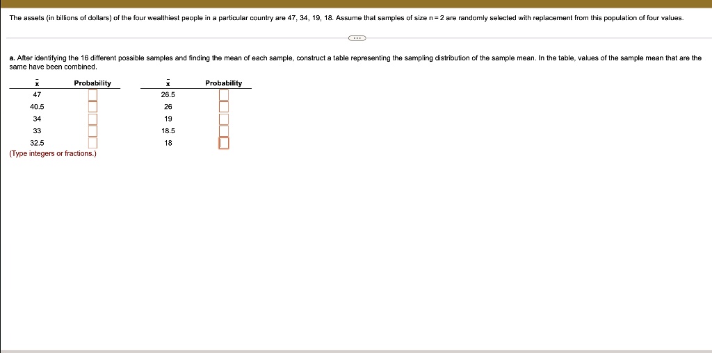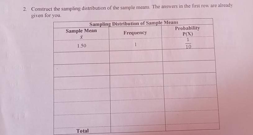 Solved: b. Construct the sampling distribution table for the sample ...
