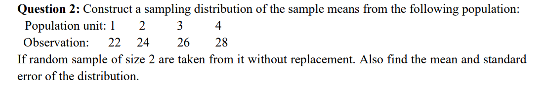 Solved Question 2: Construct a sampling distribution of the | Chegg.com