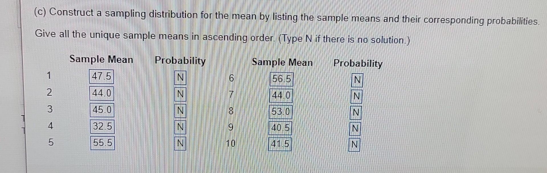Solved (c) Construct a sampling distribution for the mean by | Chegg.com