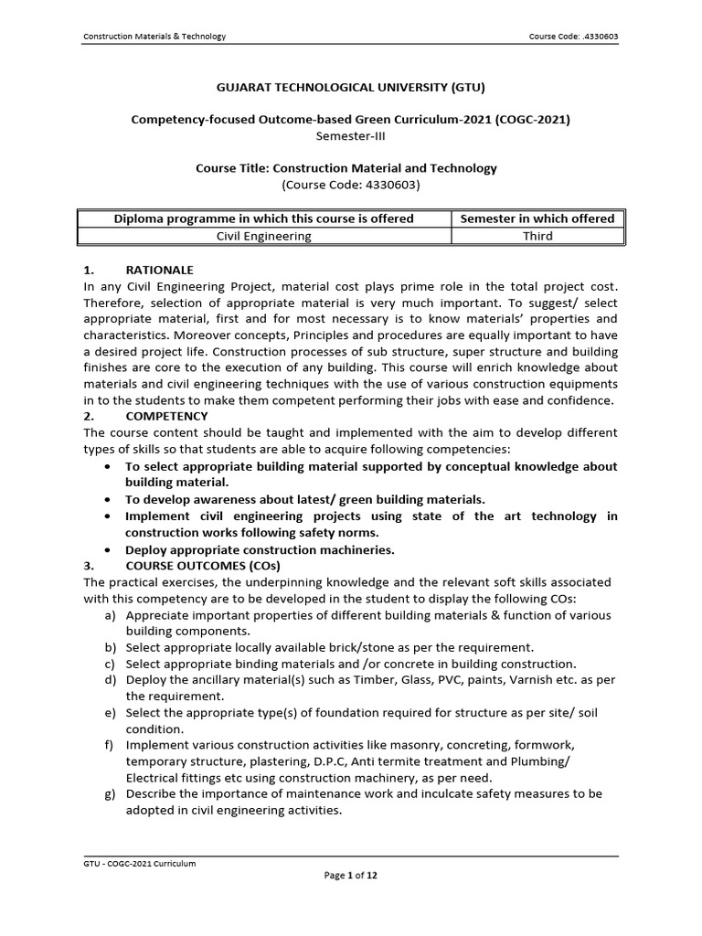 Construction Materials & Technology Course Code: .4330603 | PDF