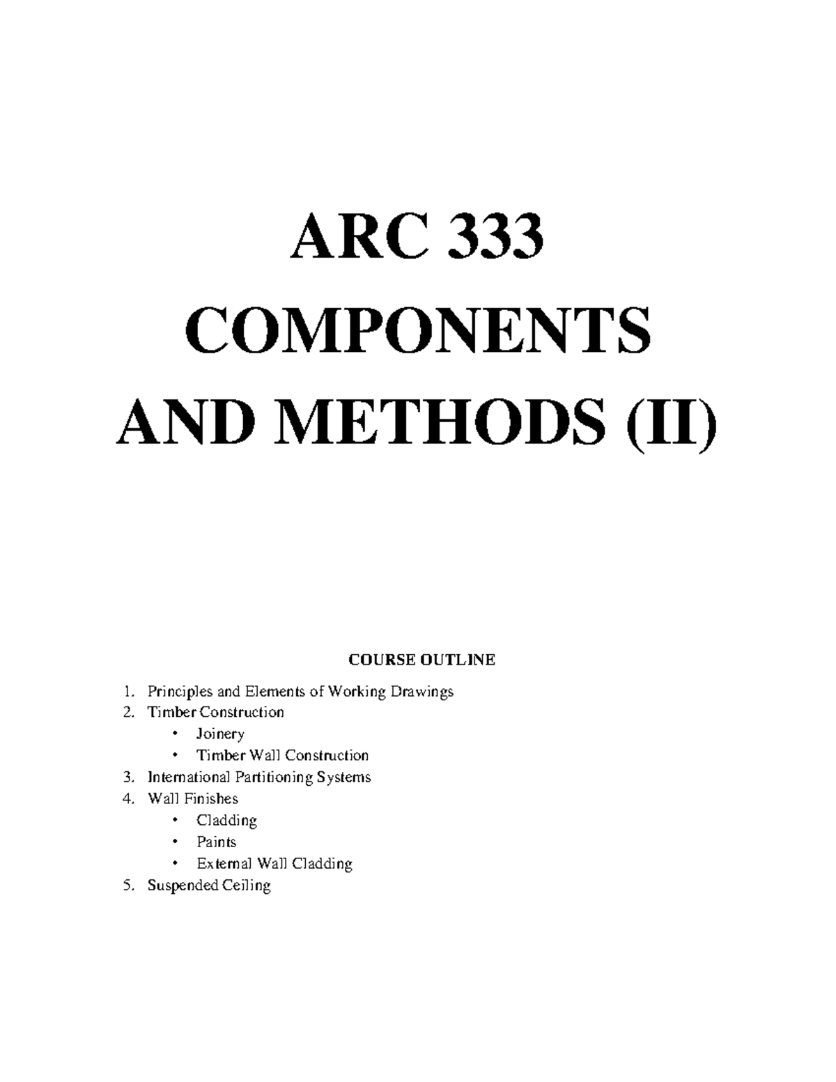 ARC 333 - Components and Methods II: Lecture Notes Overview - Studocu