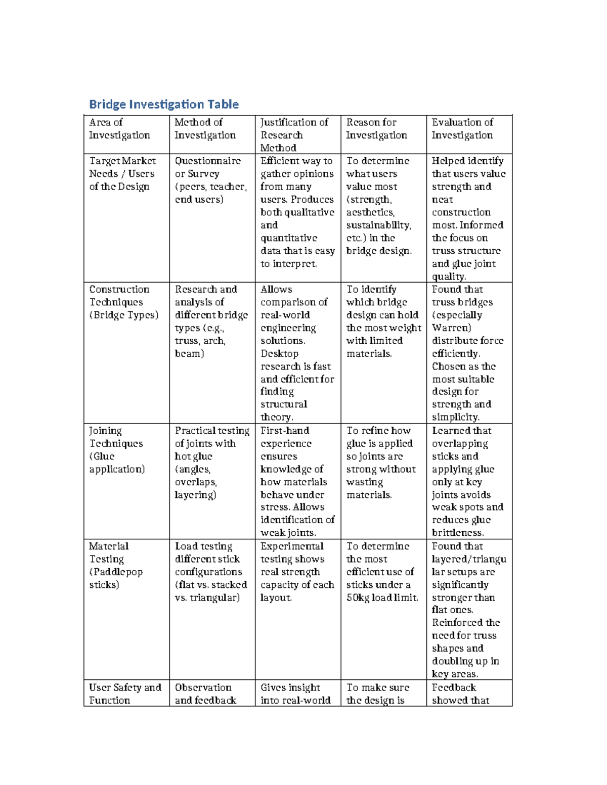 Bridge Investigation Table: Methods, Techniques, and User Insights ...