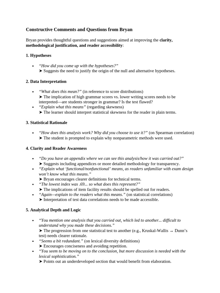 Constructive Comments and Questions From Bryan | PDF | Hypothesis ...
