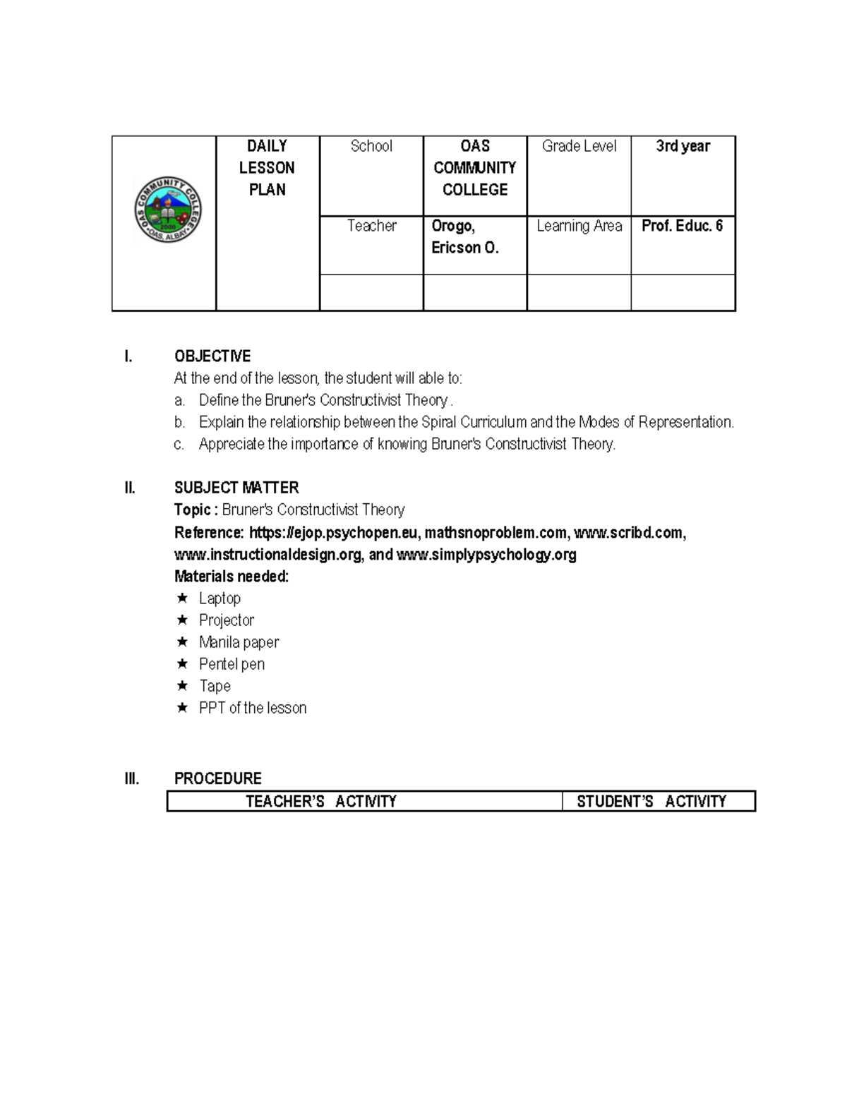 DLP Prof. Educ. 6: Constructivist Theory Lesson Plan by Mr. Orogo - Studocu