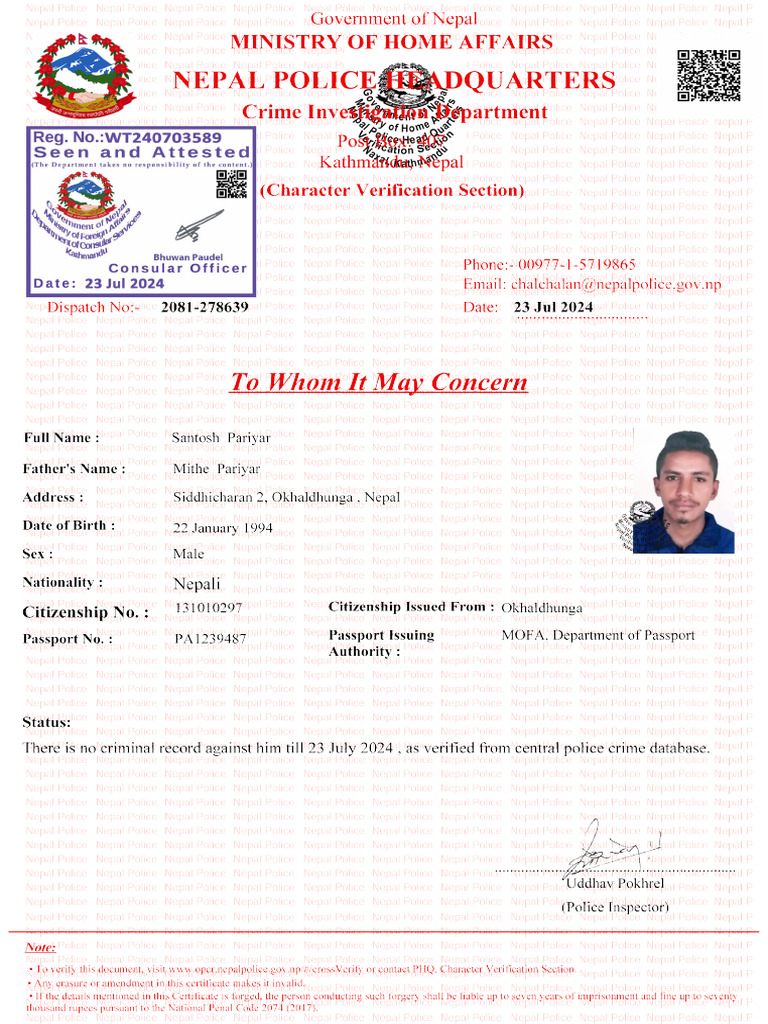 Police clearence Report ma Online Marphat Kasari Consular Chhap Ko Lagi ...