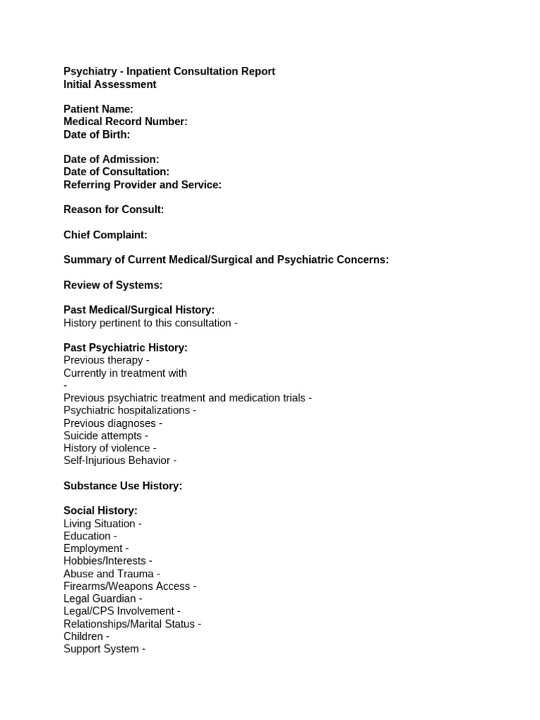 Psychiatry Consult Note Template Behavioral Health Mental Health ...