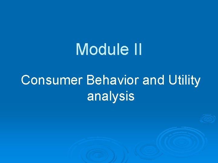 Module II Consumer Behavior and Utility analysis Meaning