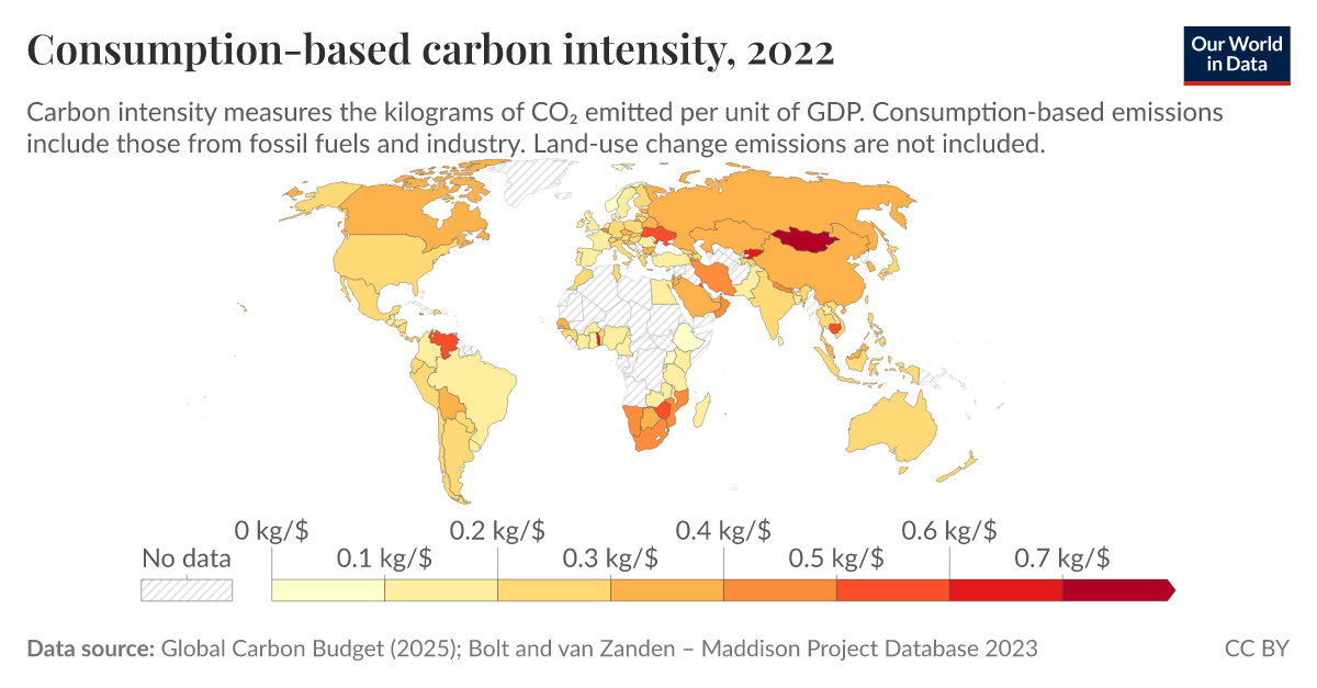 Production vs. consumption-based carbon intensity of energy - Our World ...