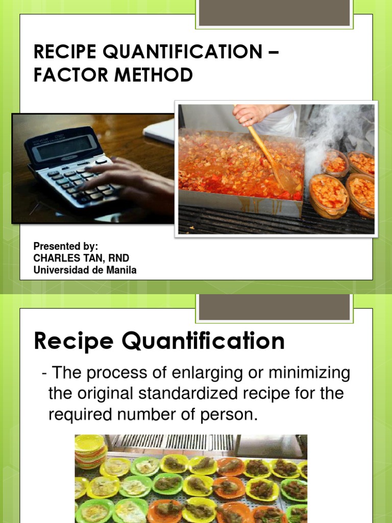 RECIPE QUANTIFICATION - Factor Method | PDF