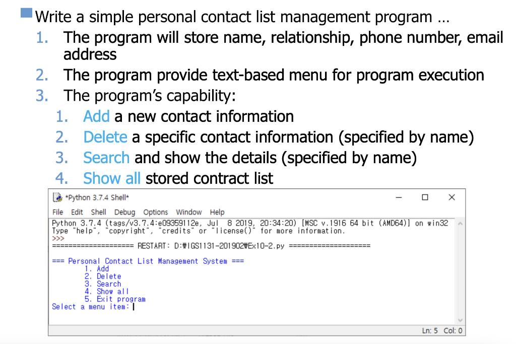 Solved Contact Manager Could not find contacts file! | Chegg.com