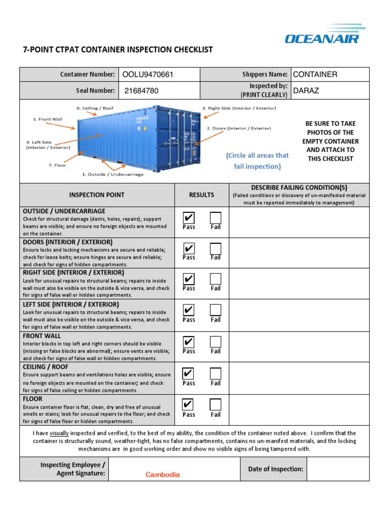 CTPAT Job Aid - 7-Point Container Inspection Checklist | PDF ...
