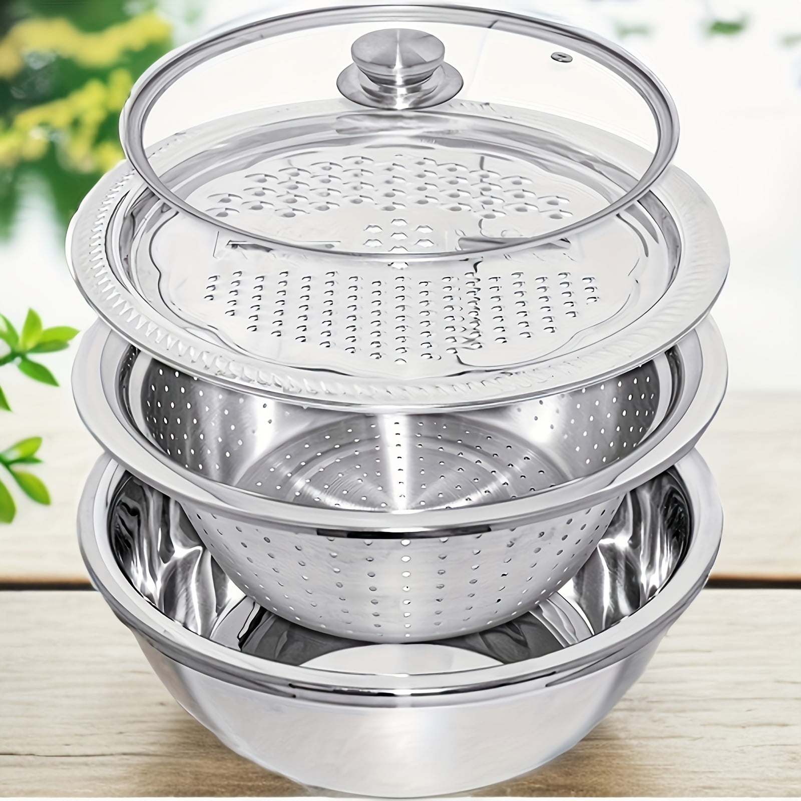 4-in-1 201 Stainless Steel Mixing Bowl with Lid, Microwave Safe ...