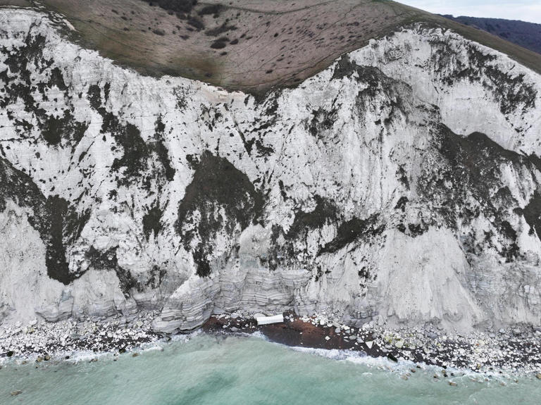 Aerial photos show shipping container washed up at Beachy Head