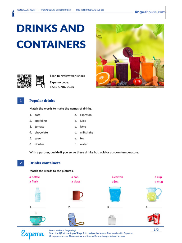 Drinks and Containers British English Teacher | PDF | Linguistics