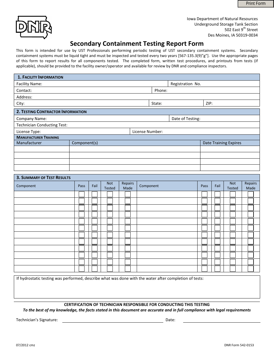 Underground Storage Tank Secondary Containment Testing Report Form ...