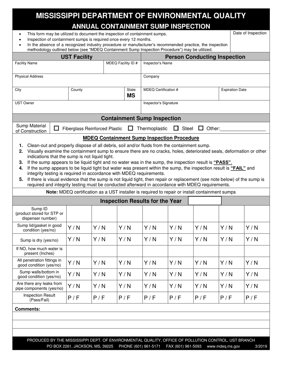 Mississippi Annual Containment Sump Inspection Download Fillable PDF ...