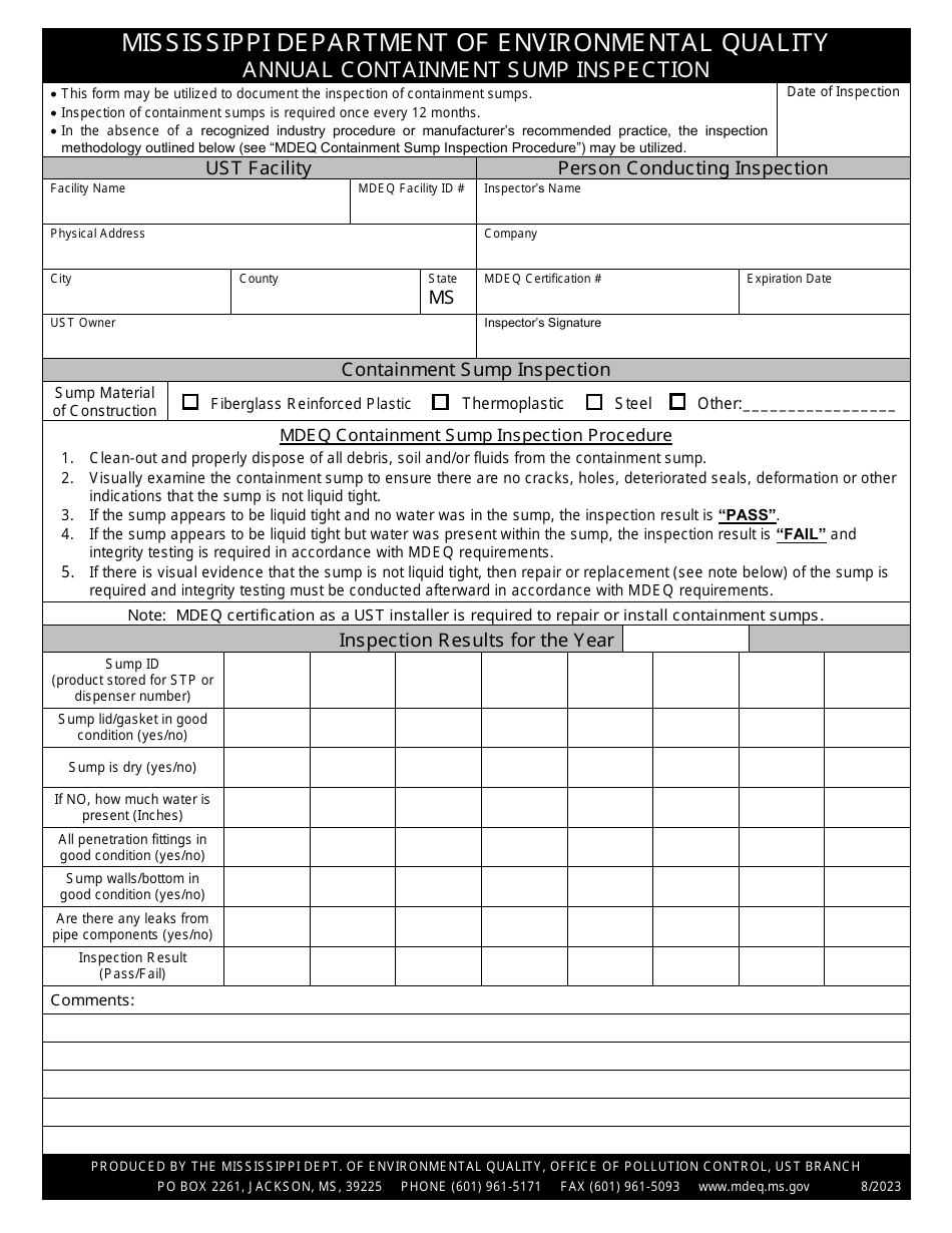 Mississippi Annual Containment Sump Inspection Form - Fill Out, Sign ...