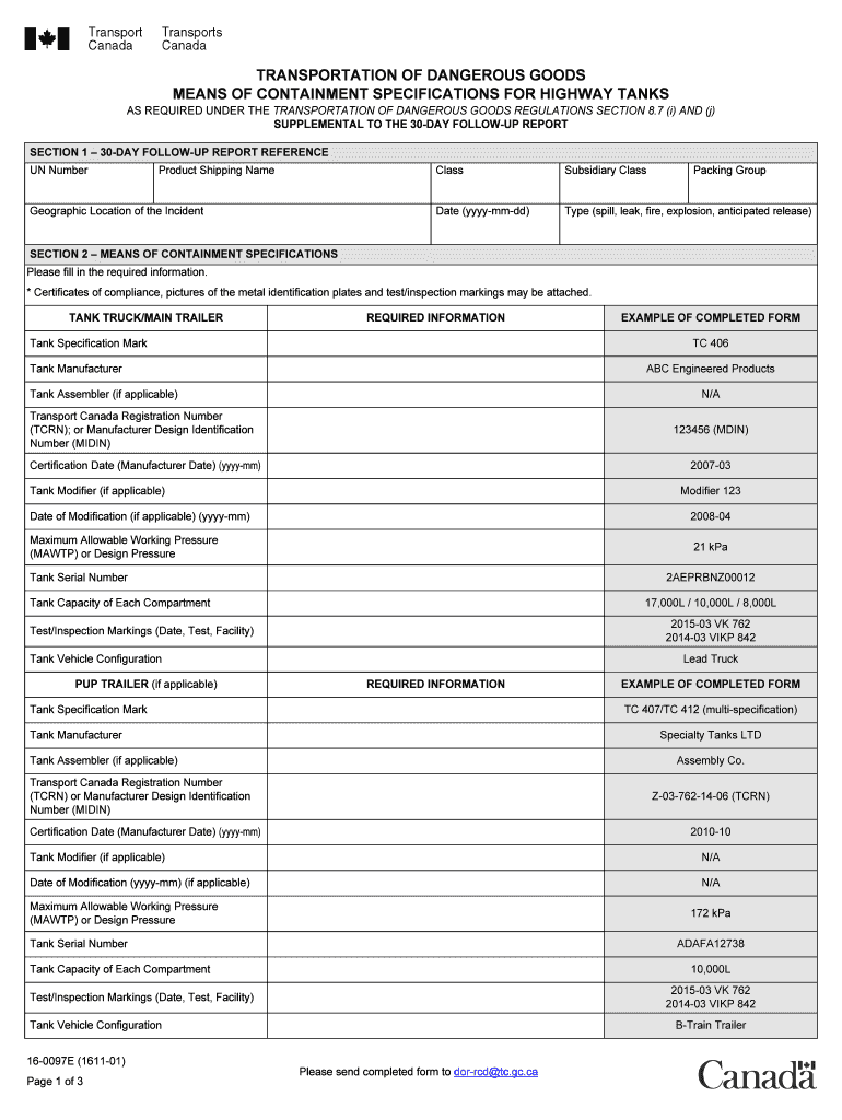 Fillable Online TRANSPORTATION OF DANGEROUS GOODS MEANS OF CONTAINMENT ...