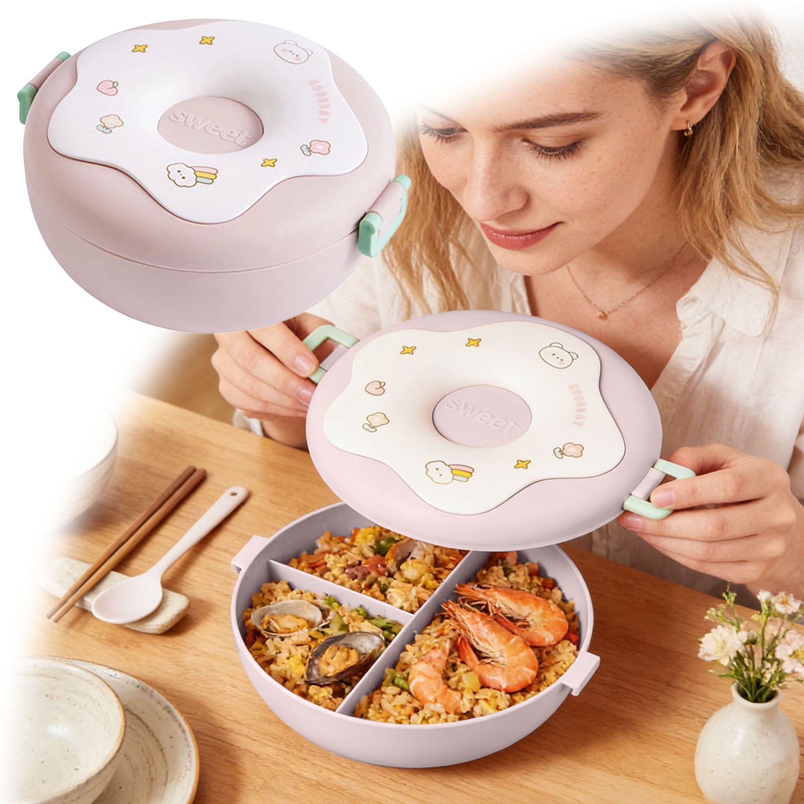 Thermal Insulated Lunch Box Bento Container 2-Layer 1-Piece - Portable ...