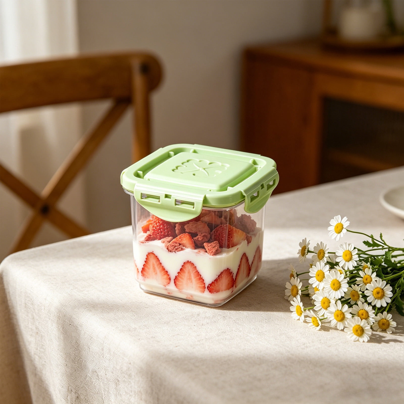 Airtight Dessert Storage Box, Reusable Yogurt and Pudding Container ...