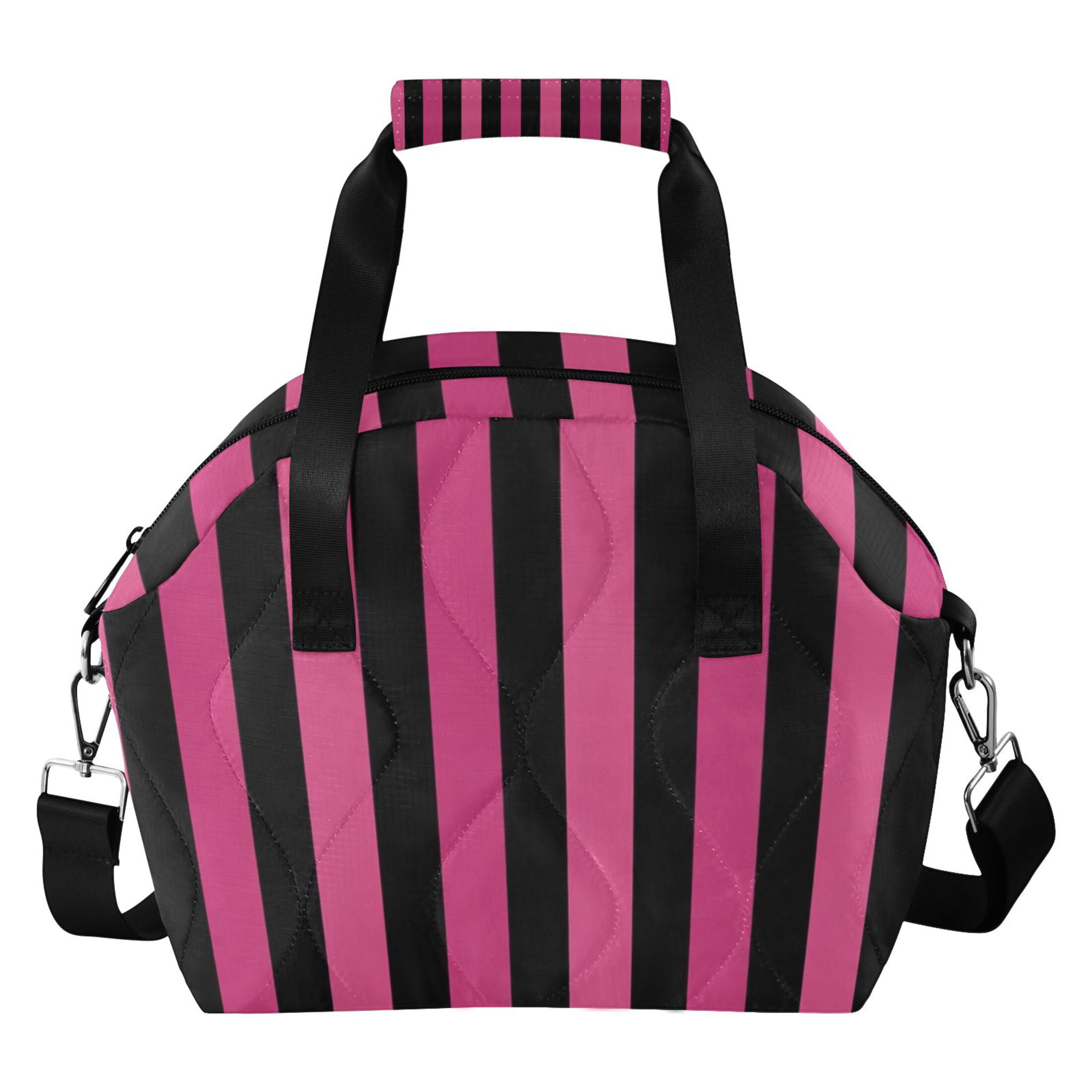 Black Pinkish Narrow Stripes Insulated Lunch Bag Reusable Quilted Lunch ...