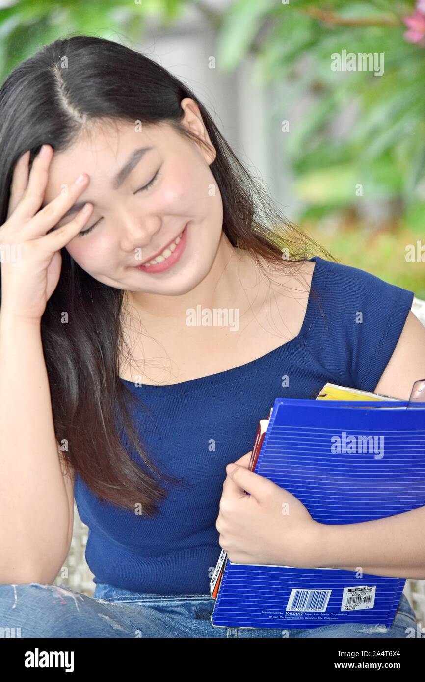 Portrait Of Female College Student Contemplating While Reading A Book ...