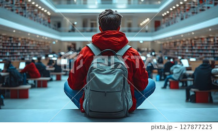 Student contemplating in a large library...のイラスト素材 [127877225] - PIXTA