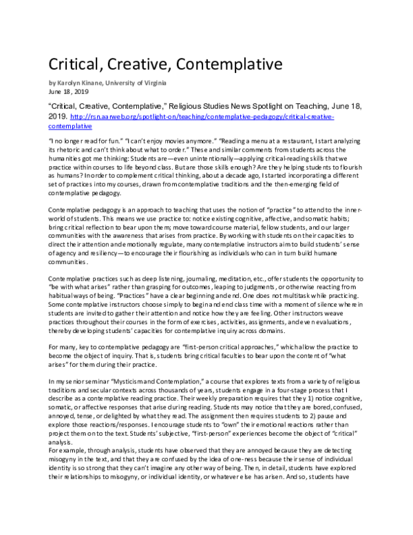 (PDF) Critical, Creative, Contemplative