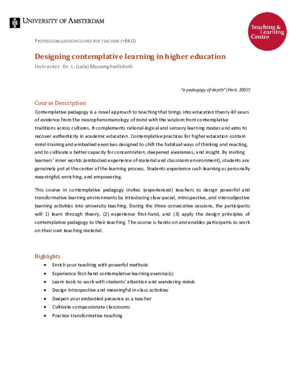 Contemplative Pedagogy - UvA Teaching and Learning Centres (TLC)