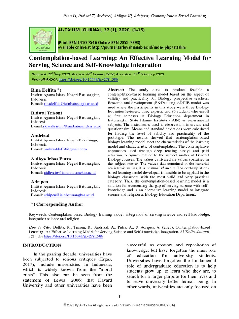 CONTEMPLATIVE LEARNING (PEMBELAJARAN KESADARAN MENDALAM) – Memaknai ...