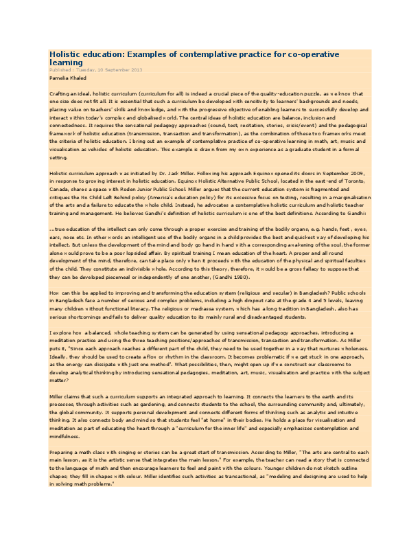 (DOC) Holistic education: Examples of contemplative practice for co ...
