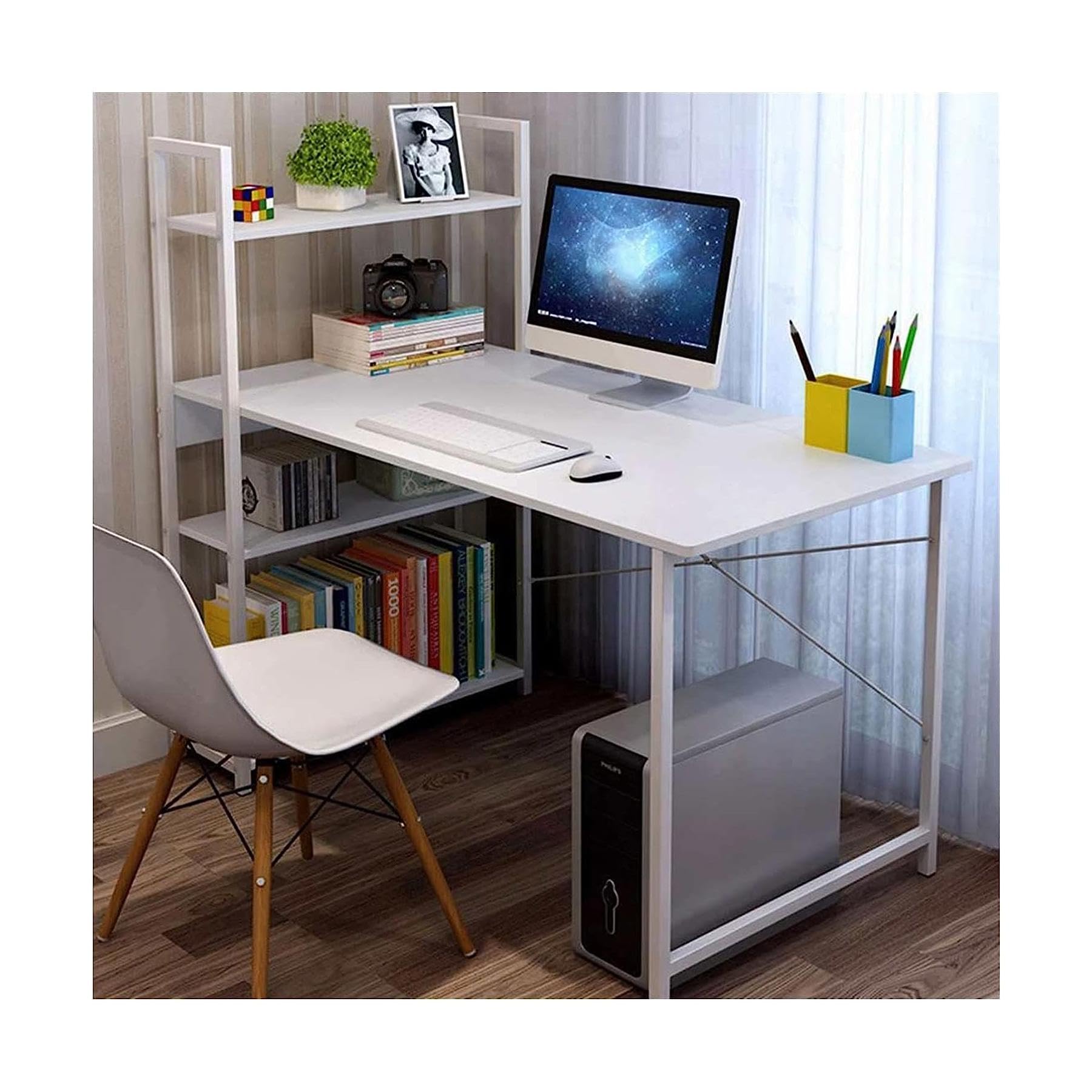 Modern Computer Desk with 3 Drawers and Storage Shelves White Home ...
