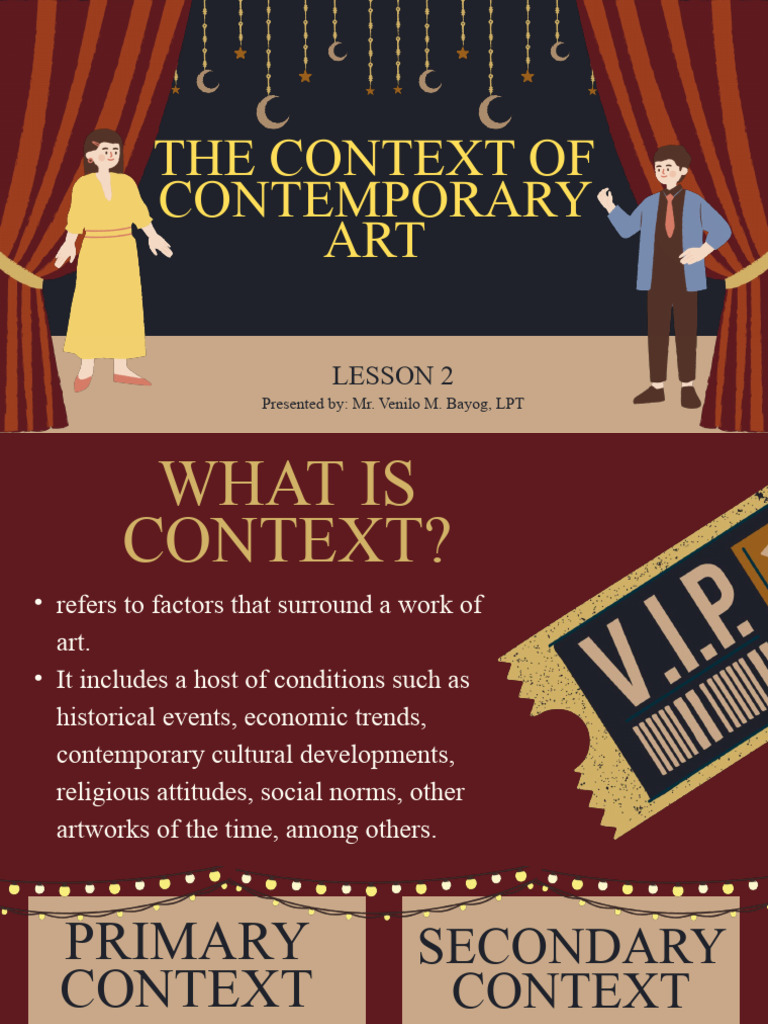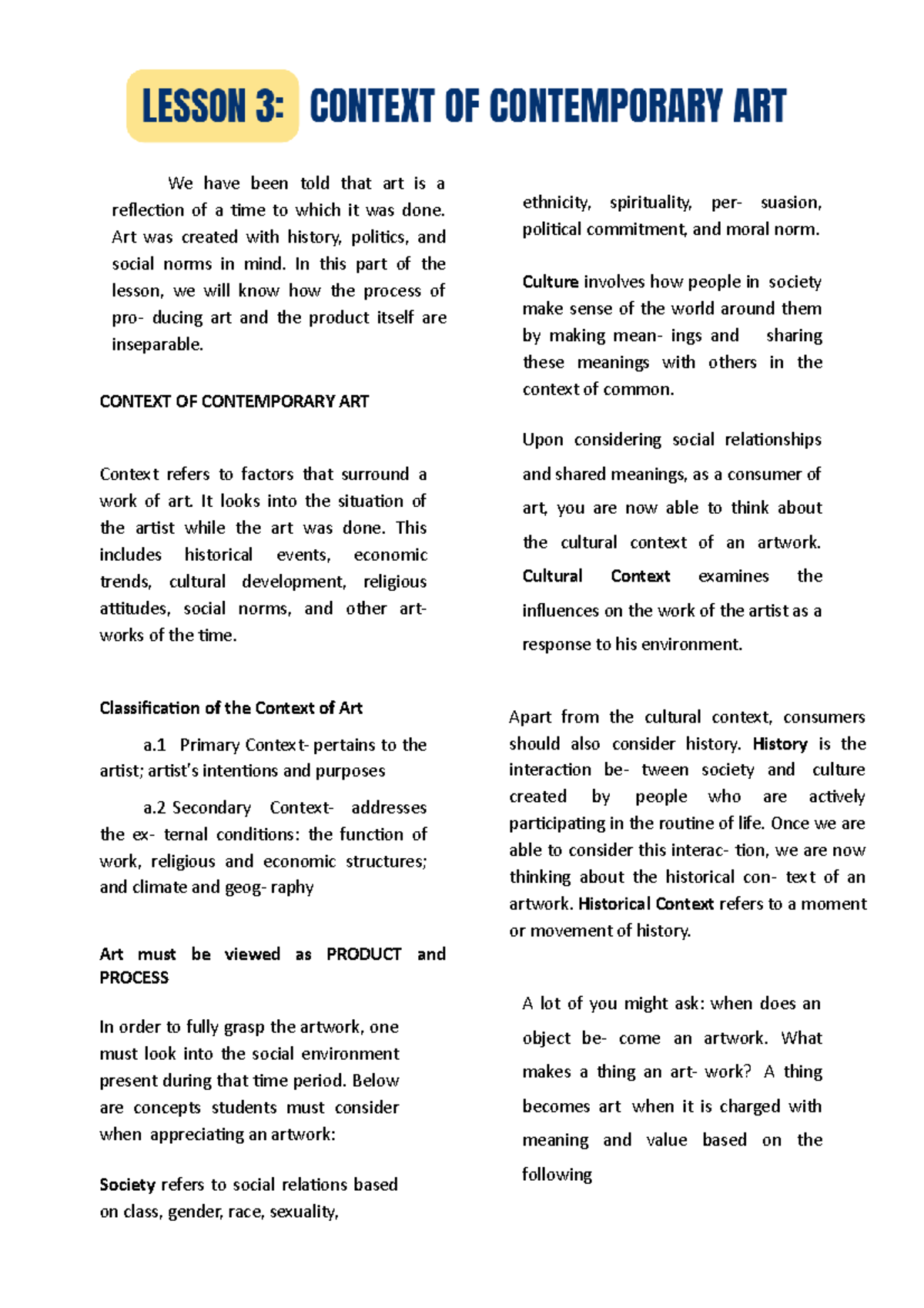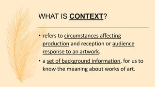 Contemporary Arts.pptx - LESSON 3: THE CONTEXT OF ART What is Context ...