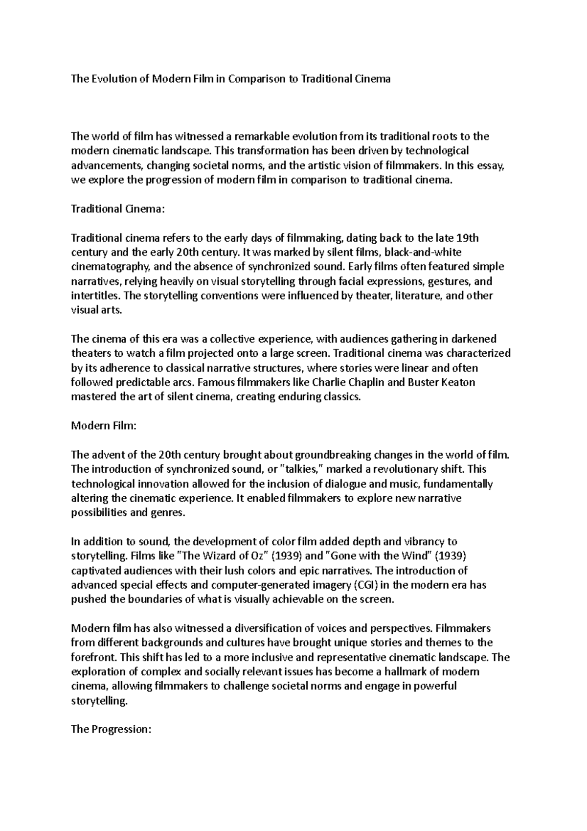 The Evolution of Modern Film in Comparison to Traditional Cinema - This ...