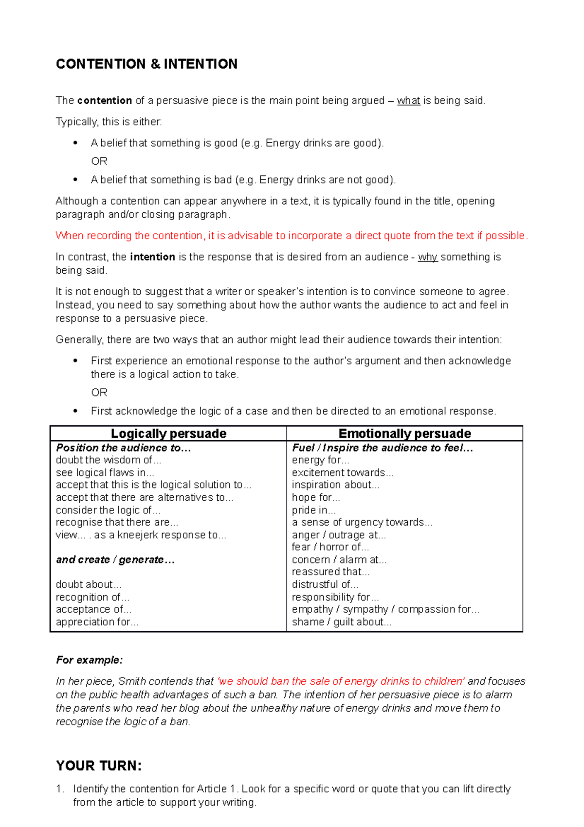 Guide to Writing Effective Contention Statements for VCE English - Studocu