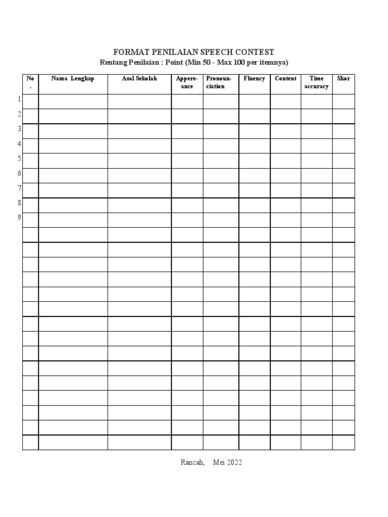 Format Penilaian Speech Contest | PDF