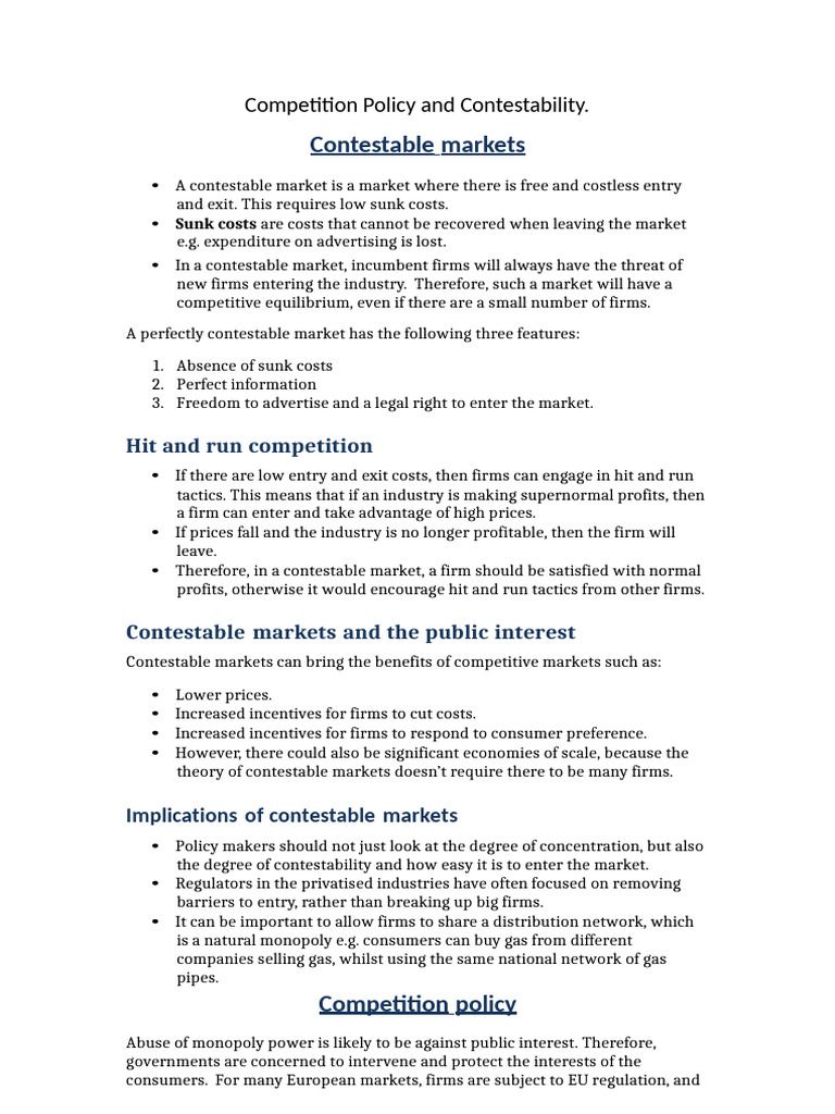 Competition Policy and Contestability | PDF | Monopoly | Profit (Economics)