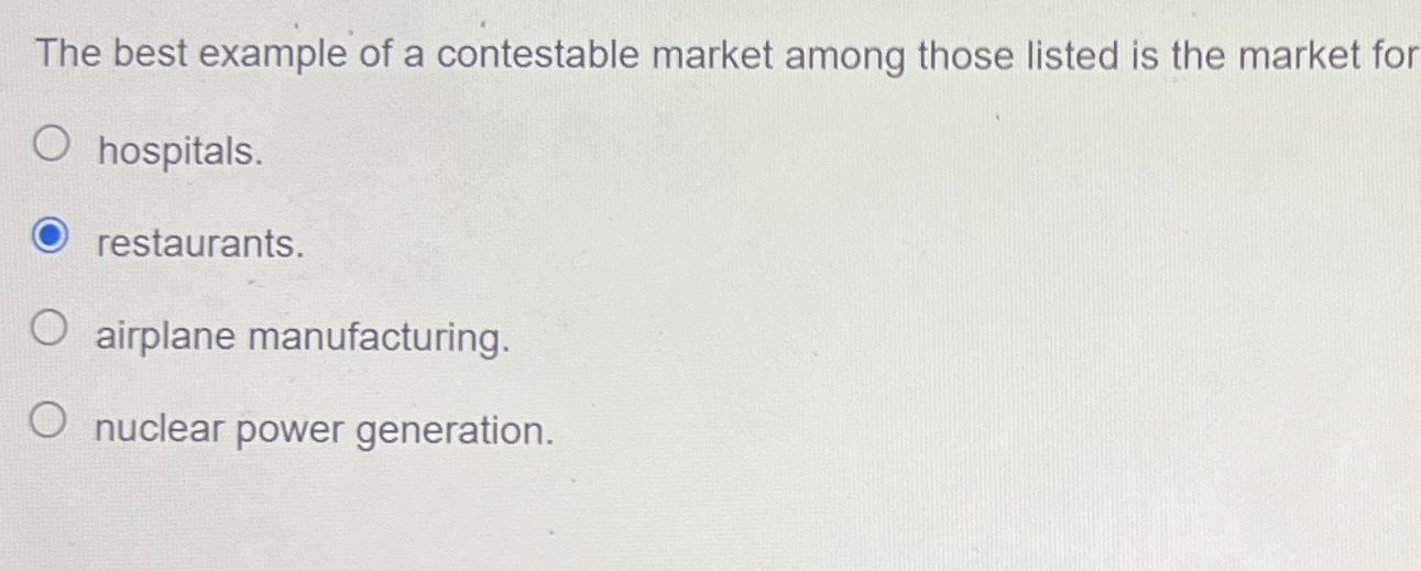 Solved The best example of a contestable market among those | Chegg.com