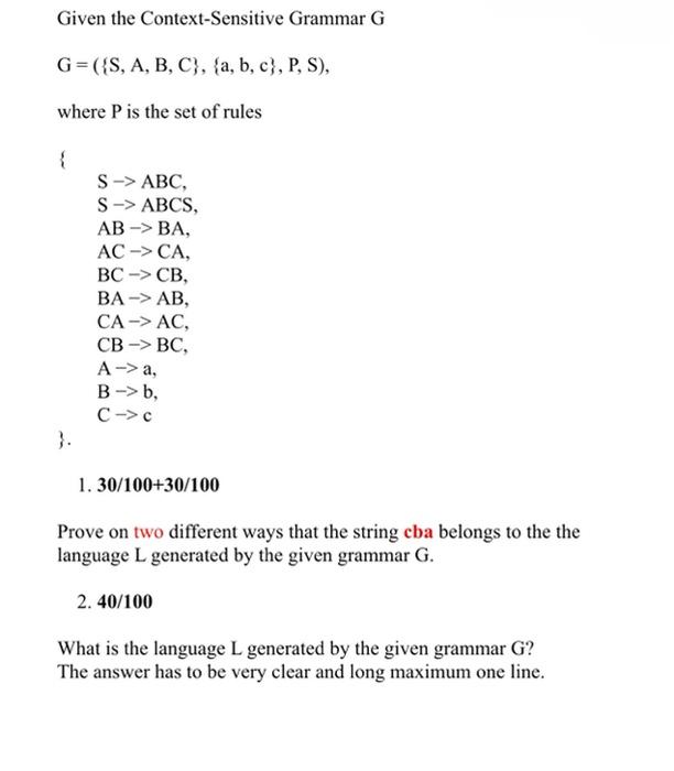 Solved Consider the following context-sensitive grammar: S | Chegg.com